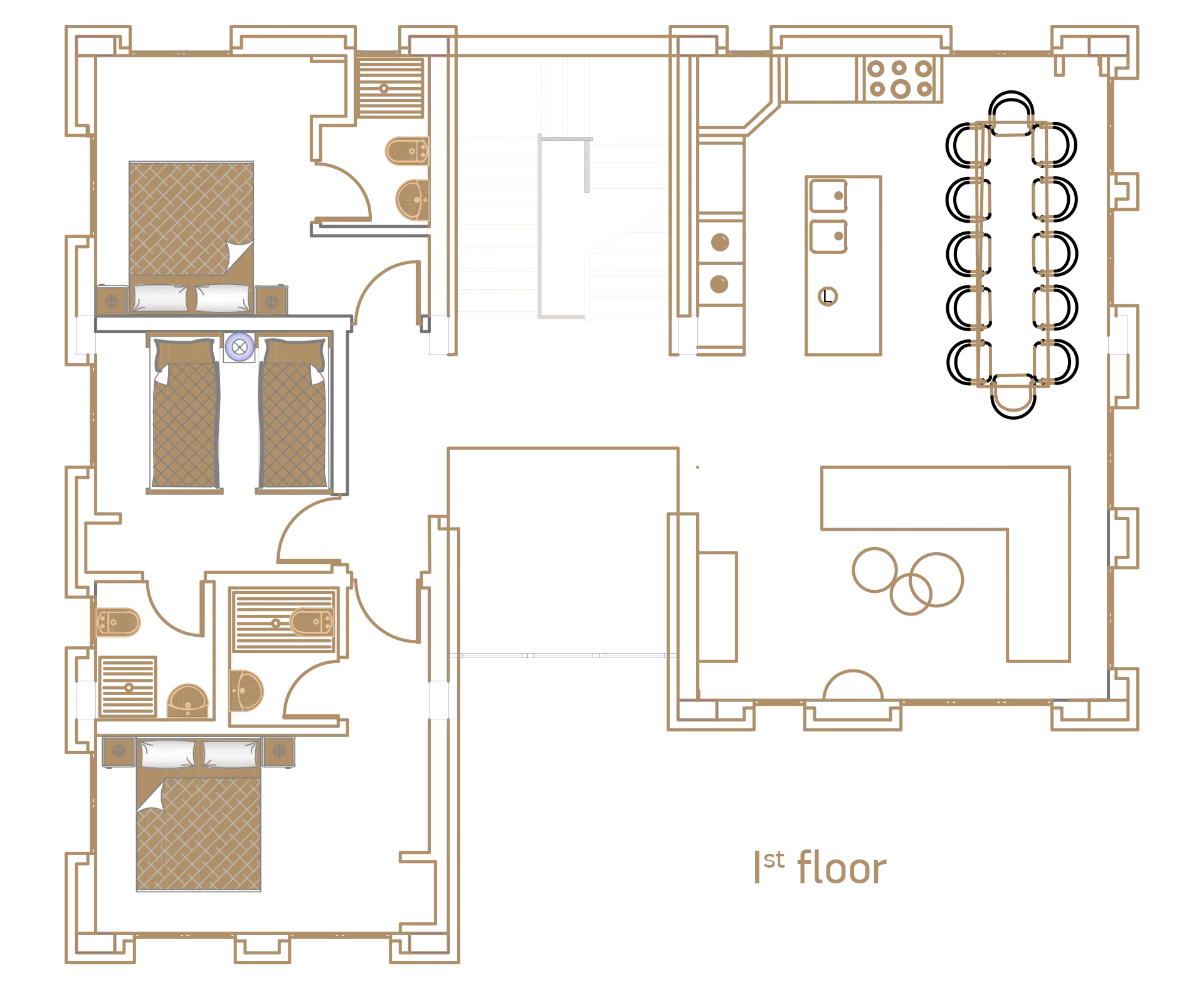 A spacious, elegant area with a fully equipped kitchen and central island—designed for effortless cooking and memorable gatherings.